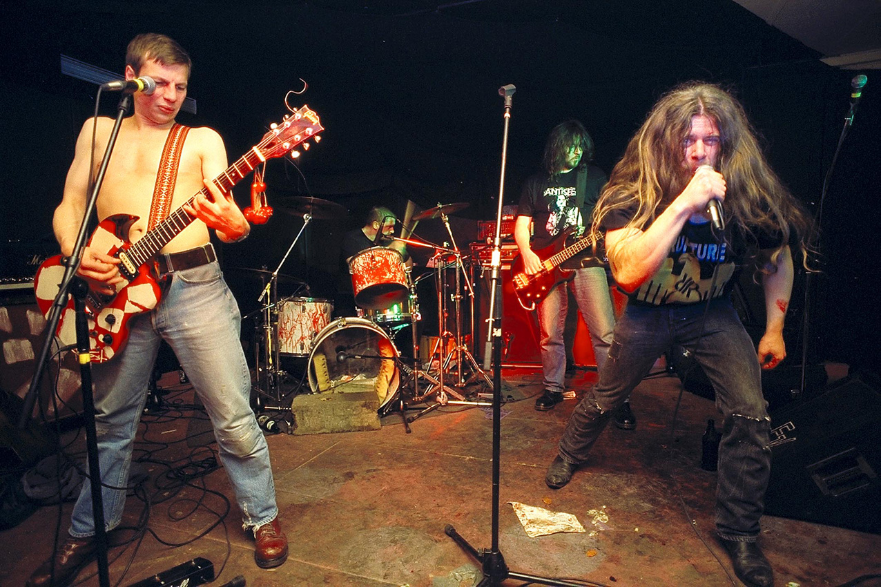 The next months and years see hell of a lot of band members come and go, in many cases not quite voluntarily. In spite of that the band is very productive and enriches the world’s cultural heritage with several – still damned rough – split 7”es (with friendly bands like Nothing But Puke, Rancid Vat, Antiseen and Hellstomper).